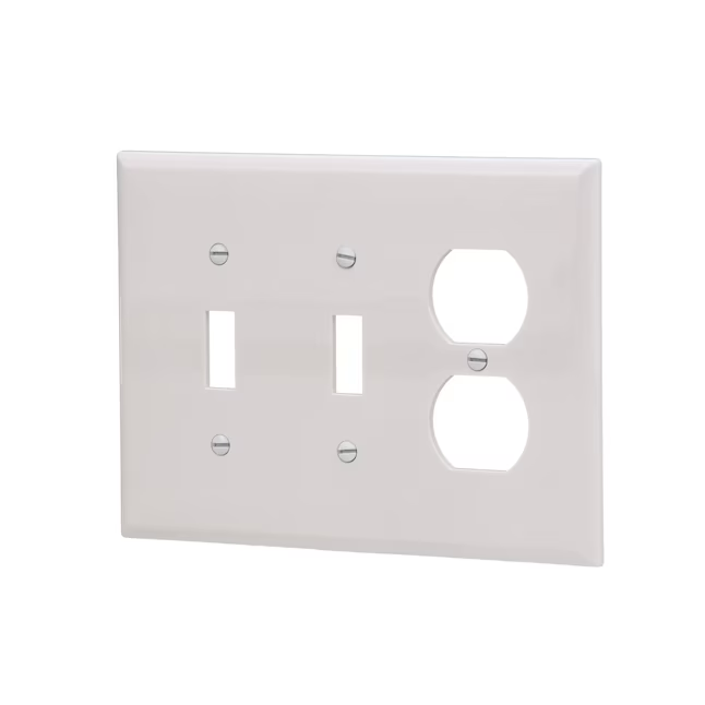 Leviton Item # 21223894 | Model # 88021Leviton 2-Toggle 1-Duplex Combination Wallplate Standard Size, White