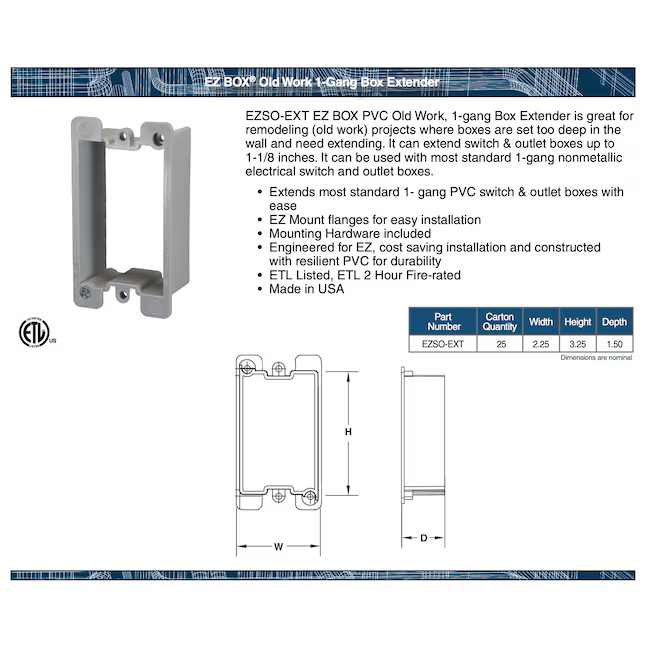 CANTEX Item # 4122219 |Model # LEZSO-EXTCANTEX Plastic Old Work Box Extender Electrical Box