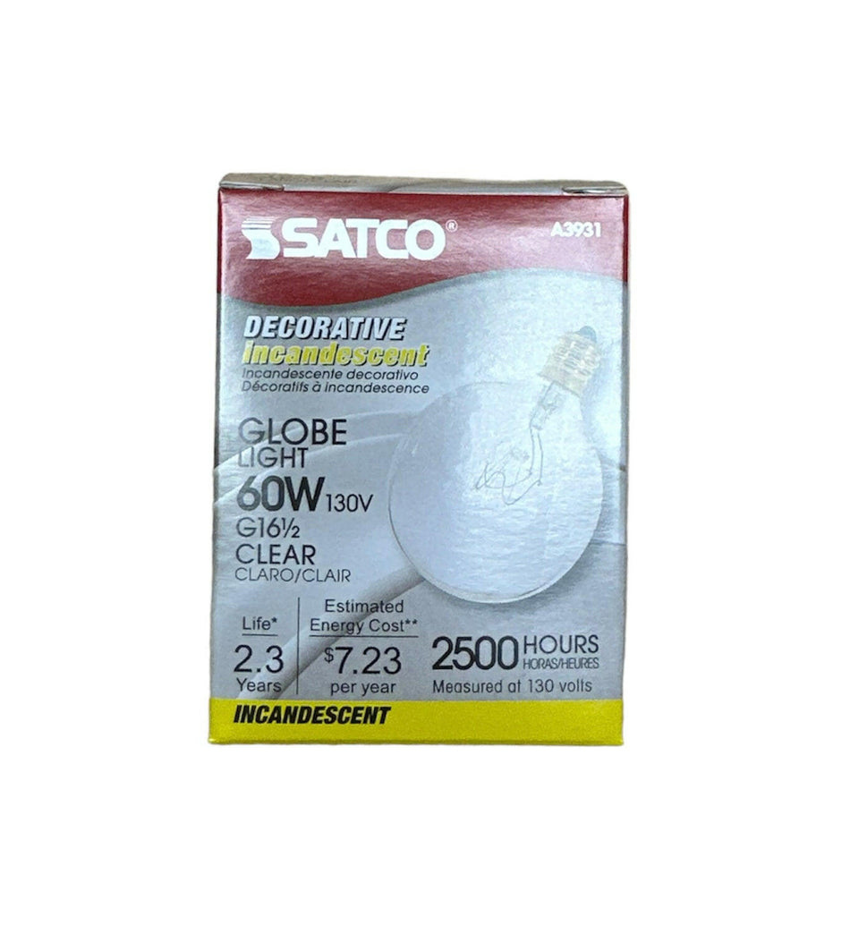 Satco Item # 81223588 | Model # A3931Satco G16 60W 130V Globe Glühbirne