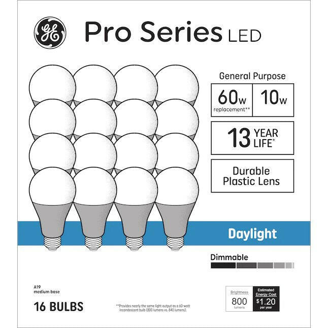 Best SellerGE Item # 71223337 | Model # 93130711GE Pro 60-Watt EQ A19 Daylight Medium Base (e-26) dimmbare LED-Glühbirne (16er-Pack)
