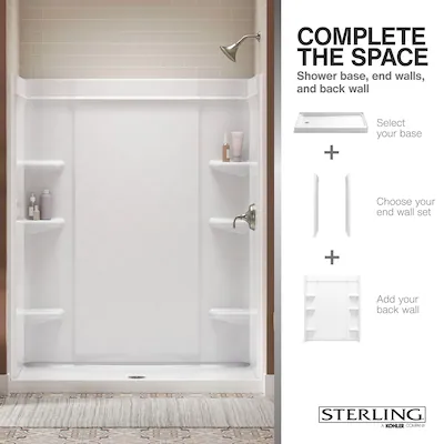 Sterling Item # 12231330 | Model # 72412800-0Sterling Medley 48 Zoll B x 34 Zoll T x 70,75 Zoll H weißes Nischen-Duschrückwandpaneel