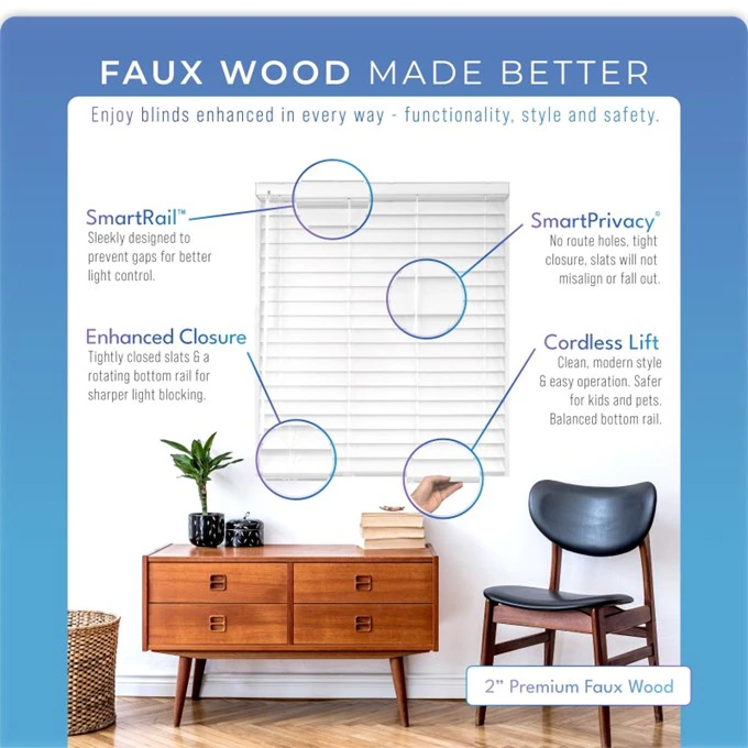 2" weiße kabellose Mini-Jalousien aus Kunstholz (35" x 48")