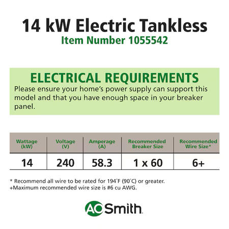AO Smith Signature Series 240 Volt 14 kW 1,6 GPM Durchlauferhitzer