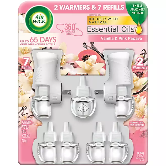 Air Wick Duftöl-Lufterfrischer-Set, Vanille und rosa Papaya (2 Stövchen + 7 Nachfüllungen)