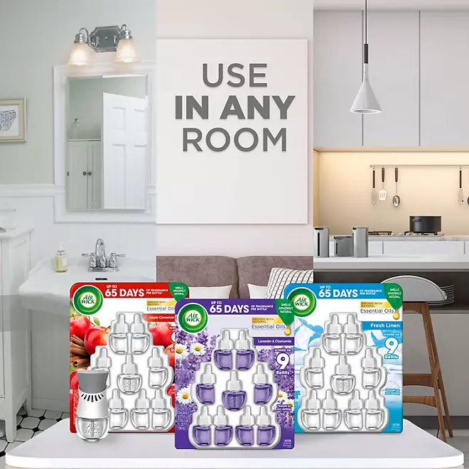 Unser neuester Plug-In-Wärmer mit Duftöl von Air Wick optimiert den Luftstrom für eine 360-Grad-Duftdiffusion und erreicht jede Ecke des Raums für ein gleichmäßiges Dufterlebnis. Mit dem Air Wick Duftölwärmer können Sie außerdem zwischen fünf Dufteinstellungen wählen, um genau die richtige Duftmenge zu erhalten, die zu Ihrem Lebensstil oder Ihren Bedürfnissen passt. Um die Duftmenge zu ändern, müssen Sie lediglich die Oberseite des Air Wick-Wärmers nach links oder rechts drehen. Es verteilt den Duft kontinuierlich und mischt ihn sorgfältig in Ihrem Raum. Ideal zur Duftverstärkung in Badezimmern, Wohnzimmern, Schlafzimmern, Büros, Küchen, Fluren und mehr!