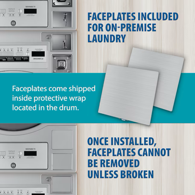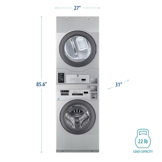 - Features ADA Compliant Yes Number of Rinse Cycles 3 Coin-Operated Yes (mechanism included) Number of Rinse Temperatures 0 Control Type Electro-mechanical Number of Temperature Selections 4 Dispensers None Number of Wash Cycles 3 Dryer Drum Material Stainless steel Power Cord Included Yes Dryer Load Type Front load Power Source Electric End-of-Cycle Signal for Dryer Yes Warranty 3-year limited Fill and Drain Hoses Included No Washer Load Type Front load Gas or Electric Electric Washer Tub Material Stainless LP Convertible No Water Levels 0 Number of Drying Cycles 3