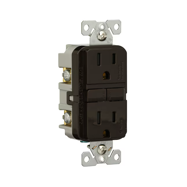 Eaton 15 Ampere 125 Volt manipulationssichere GFCI-Dekorationssteckdose für Wohngebäude, braun