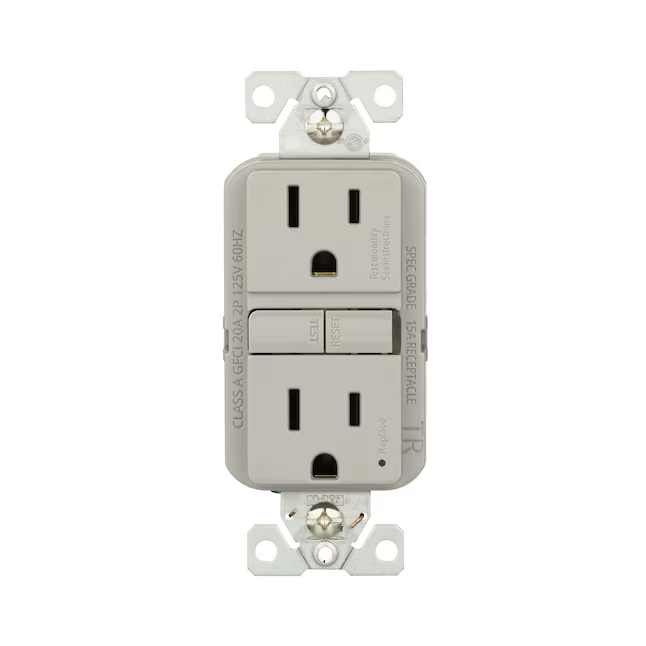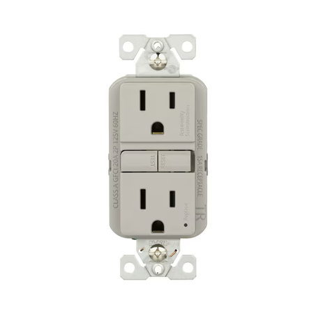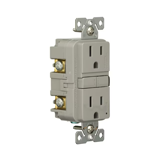 Eaton 15 Ampere 125 Volt manipulationssichere GFCI-Dekorationssteckdose für Wohngebäude, grau