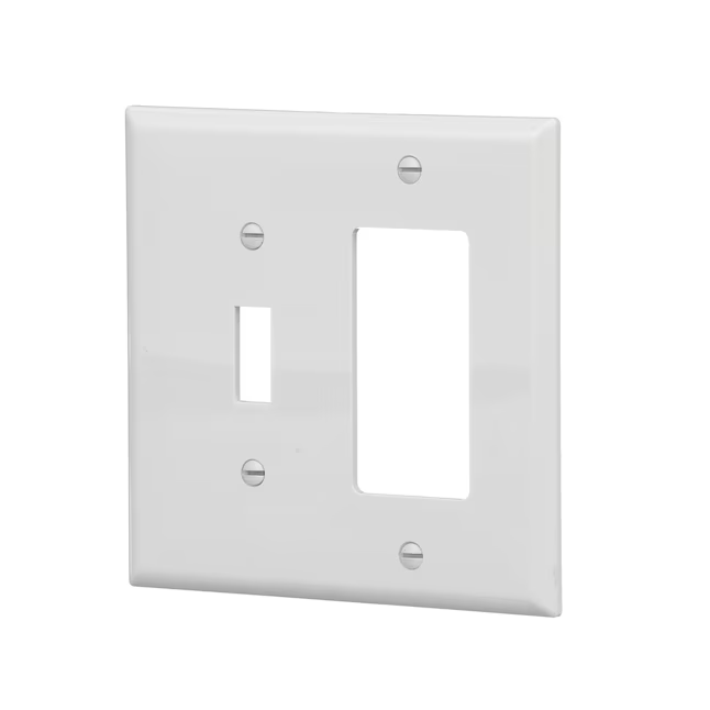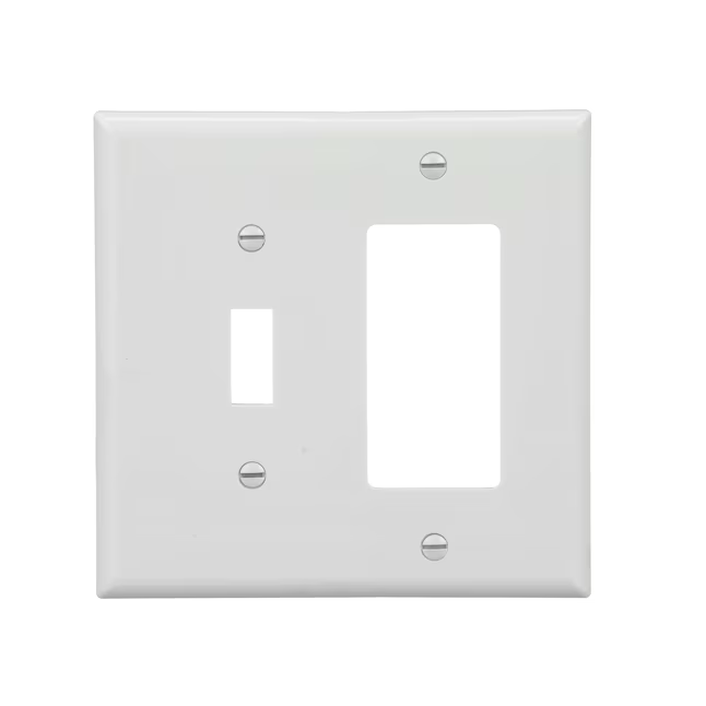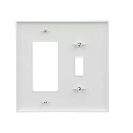 Eaton 2-Gang mittelgroße weiße Polycarbonat-Wandplatte für den Innenbereich mit Kippschalter/Dekorator