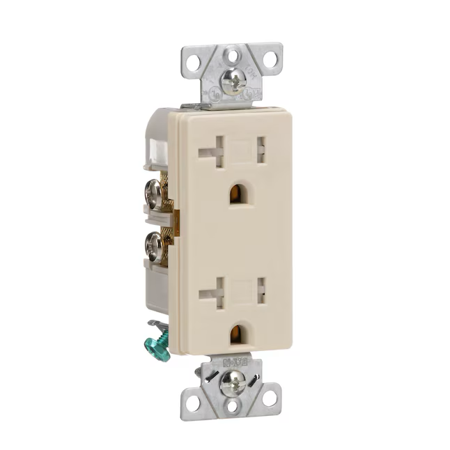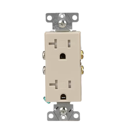 Die gewerbliche Dekorateur-Doppelsteckdose mit hellem Mandel-Finish bietet eine Kapazität von 20 A und 125 V und ist für ein zuverlässiges, langlebiges Benutzererlebnis bei gleichzeitiger Erhöhung der Geschwindigkeit und Effizienz der Installation konzipiert.