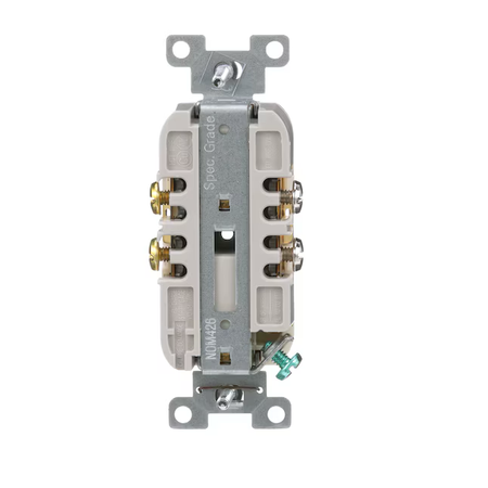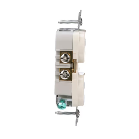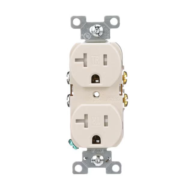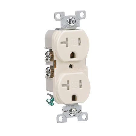 Die handelsübliche Doppelsteckdose mit hellem Mandel-Finish bietet eine Kapazität von 20 A und 125 V und sorgt für ein zuverlässiges, langlebiges Benutzererlebnis bei gleichzeitiger Erhöhung der Geschwindigkeit und Effizienz der Installation.
