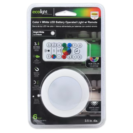 Ecolight 3,5-Zoll-RGBW-LED-batteriebetriebenes magnetisches Tap-Puck-Licht mit IR-Fernbedienung