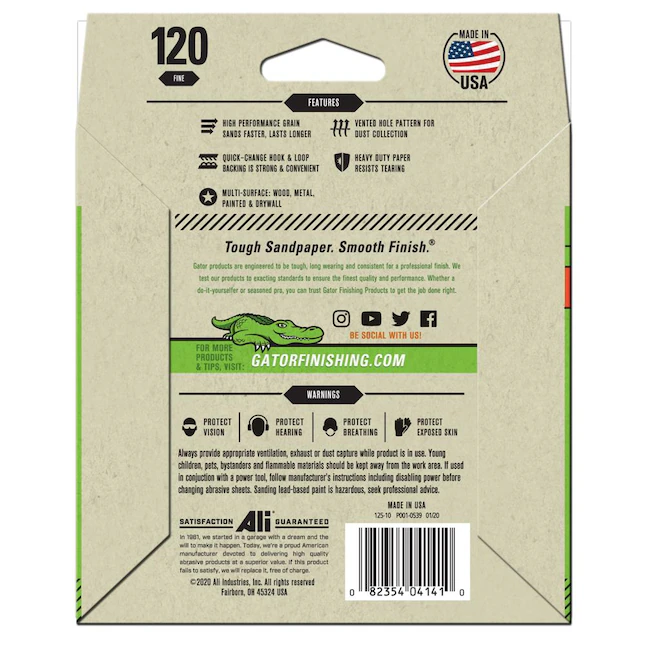 Gator 15-teiliges Aluminiumoxid-Schleifpapier mit 120er Körnung
