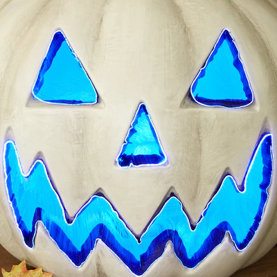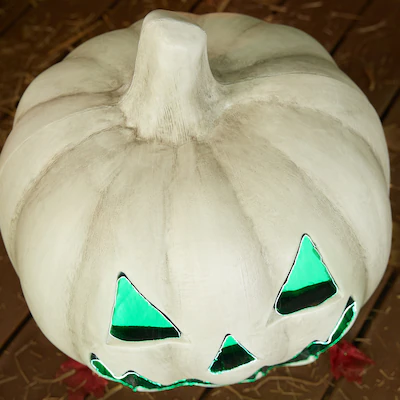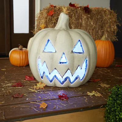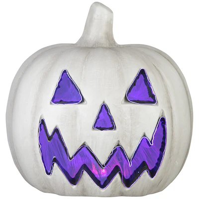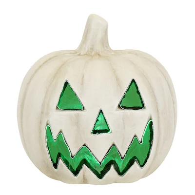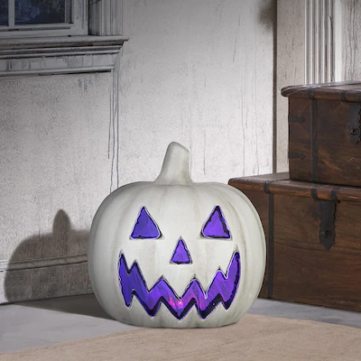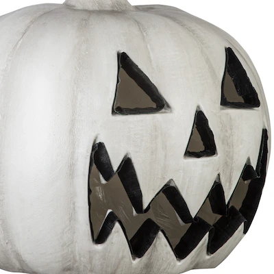 Haunted Living 20-Zoll-LED-Kürbis-Dekoration in weißer Jack-o-Lantern-Optik