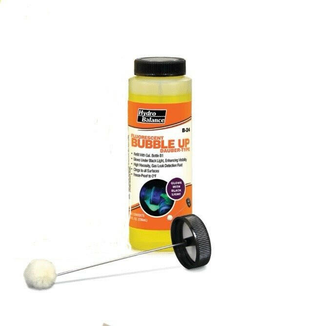 Um Lecks zu erkennen, verwenden Sie eine Tupferkappe, die Sie großzügig um die Verbindungsstellen von Druckgassystemen auftragen. Große Lecks bilden sich sofort in die Luft. Langsame, kleine Lecks bilden sich innerhalb weniger Sekunden.