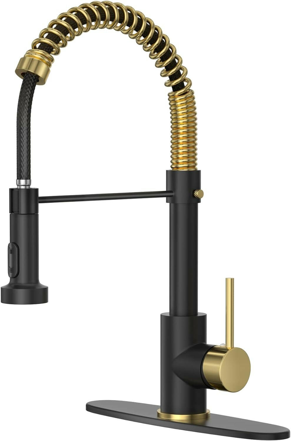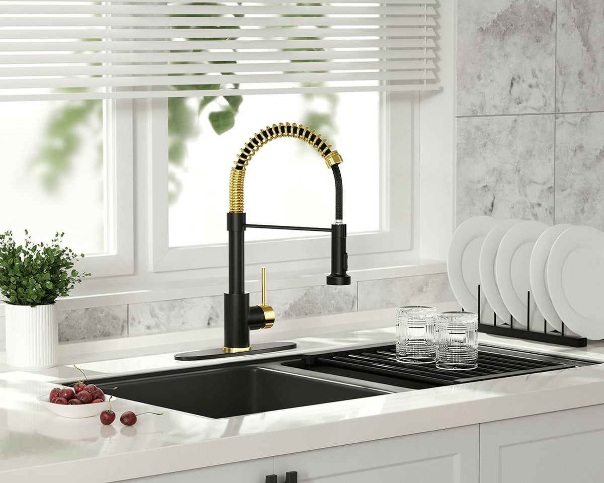 IBOFYY Einhebel-Wasserhahn für gewerbliche Küchenspüle mit multifunktionalem ausziehbarem Auslauf (Schwarzgold)