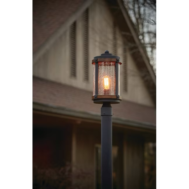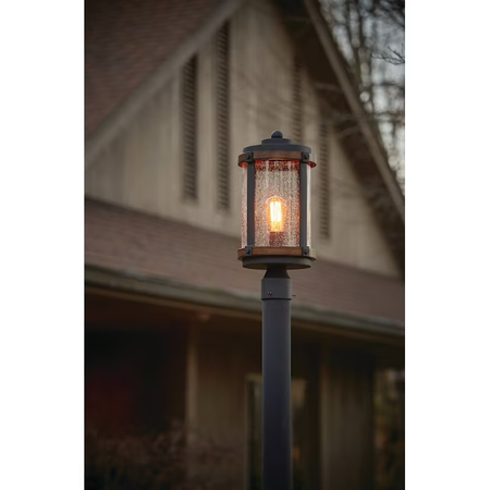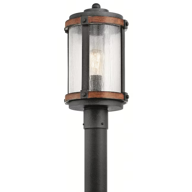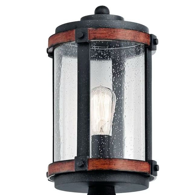 Kichler Barrington 17,88 Zoll rustikale Außenpfostenleuchte in Distressed-Schwarz und Holz