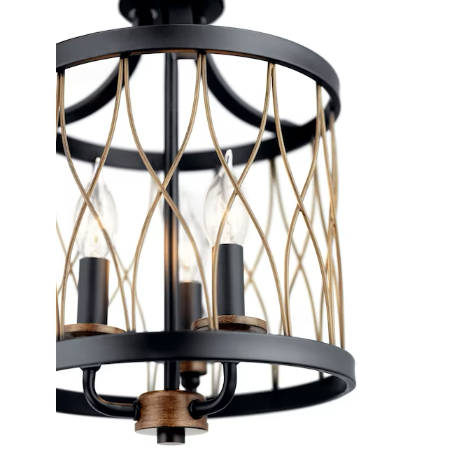 Kichler Brookglen 3-flammige Mini-Pendelleuchte in Schwarz mit Goldton im französischen Landhausstil