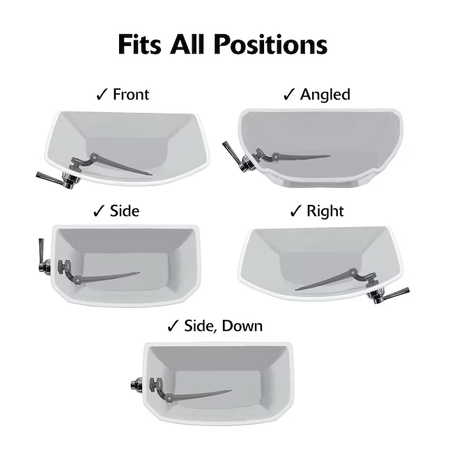 Passt sich leicht an alle Tankpositionen an: Toilettentanks vorne, abgewinkelt, rechts und seitlich montiert