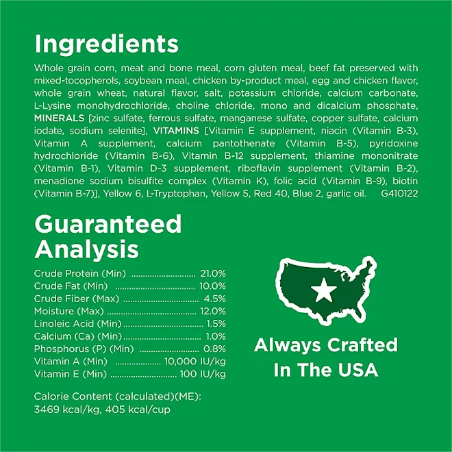 Vollgepackt mit 23 Vitaminen und Mineralstoffen, die ein gesundes, aktives Leben für Hunde unterstützen, und einer leicht verdaulichen Formel. Nährwerte Zutaten und hochwertiges Protein für starke Muskeln unterstützen einen aktiven Lebensstil, der Ihren Hund glücklich und gesund hält, während die knusprigen Hundekroketten die Zähne reinigen und eine angenehme Textur bieten. Dieses komplette Trockenfutter für ausgewachsene Hunde unterstützt auch eine gesunde Haut und ein gesundes Fell, während die Antioxidantien die Immungesundheit Ihres Hundes unterstützen. Sie können sich auf das Hundefutter verlassen, das Sie Ihrem besten Freund geben, denn Purina Dog Chow Complete Adult Dry Dog Food wird sorgfältig von Mitarbeitern hergestellt, die ihm so sehr vertrauen, dass sie es ihren eigenen Hunden geben würden.