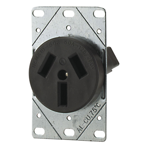 - Nicht geerdete 50-A-Steckdose mit geradem Flachstecker