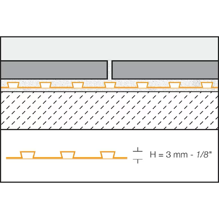 Ditra ist 1/8 Zoll dick und für Bodeninstallationen mit Keramik-, Porzellan- und Steinfliesen konzipiert.