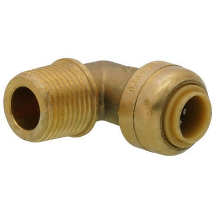 SharkBite 1/4 Zoll (3/8 Zoll Außendurchmesser) x 3/8 Zoll MNPT Messing-Druckspüler-Winkelstück