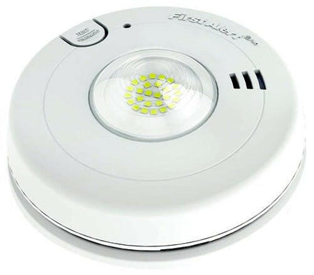 Der festverdrahtete LED-Blitzlicht-Rauchmelder von First Alert verwendet einen fotoelektrischen Rauchsensor, der optimalen Schutz vor Schwelbränden bietet. Photoelektrische Rauchmelder reduzieren auch die Wahrscheinlichkeit von Fehlalarmen, wie sie durch Kochbrände oder Duschdampf verursacht werden. Dieser Rauchmelder für Hörgeschädigte entspricht den UL-Standards und erfüllt die Anforderungen des American with Disabilities Act.