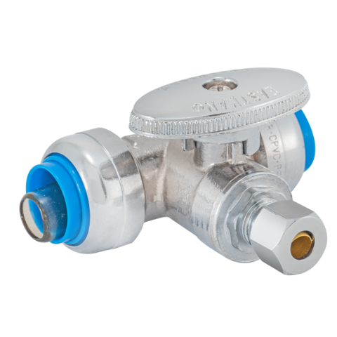 DiscontinuedEastman Item # 91223291 | Model # 10777LFEastman 1/4-Turn Dual Outlet Stop Valve - 1/2 in. Push-Fit x 1/2 in. Push-Fit x 1/4 in. OD Comp