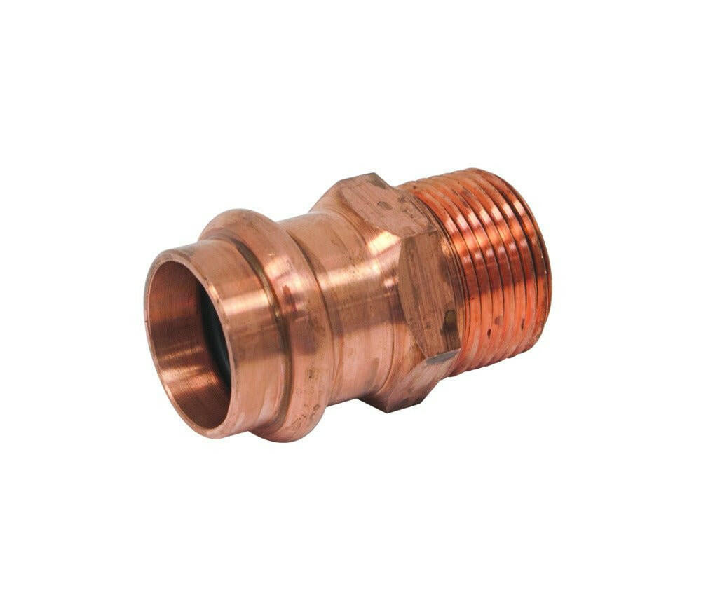 The 3/4 inch x 3/4 inch Copper Press x MPT Pressure Male Adapter features an high-quality EPDM O-ring to create a tight, leak-free seal. Easy to use, simply apply pressure from a pressing tool to tighten the O-ring onto the tube, ensuring a clean, watertight seal in seconds with no flame, solder, or flux. Connections can be made in wet or dry conditions reducing project downtime. The coupling is compatible with all major hydraulic press tools and is NSF listed and lead-free.