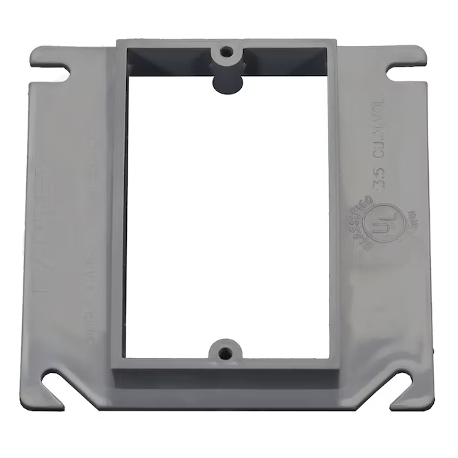 CANTEX box 1-gang cover provides a 1/2 in. rise or extension for any CANTEX 4 inch square box, 4 inch square box or 2-gang boxes. These risers easily reduce CANTEX 4 inch square or 2-gang goes to single-gang usage. he riser has 4 notches for easy installation of screws to secure the riser.