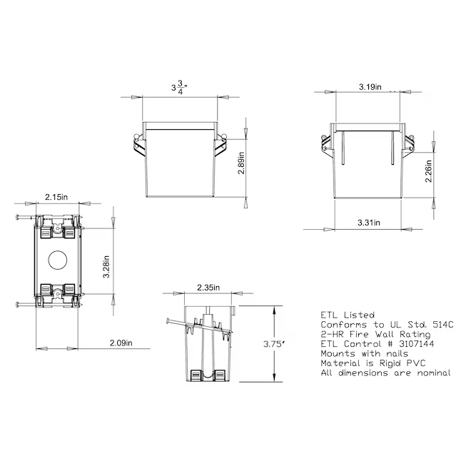 CANTEX 1-Gang PVC New Work Switch/Outlet Electrical Box