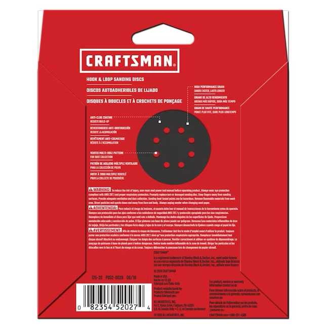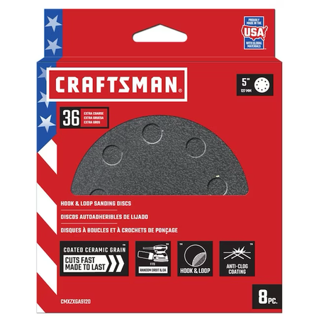 CRAFTSMAN 5 In 8H H/L Cer Disc 36 Grit 8pk 8-Piece Ceramic Alumina 36-Grit Disc Sandpaper