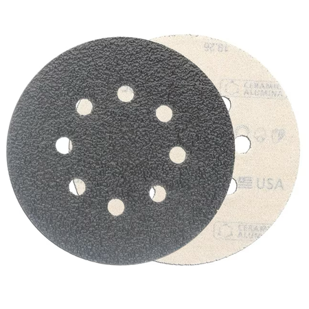 These premium sanding discs are designed for heavy duty sanding and grinding of wood, metal, fiberglass and painted surfaces. The resin bonding system resists heat and moisture, which extends the useful life of the sanding discs. The ultra-tough ceramic grain makes these discs perfect for more aggressive applications like removing welds and finishing of ferrous and non-ferrous material.