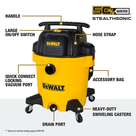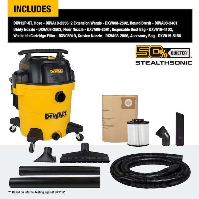 DEWALT Stealthsonic Quiet 12-Gallons 5.5-HP Corded Wet/Dry Shop Vacuum with Accessories Included