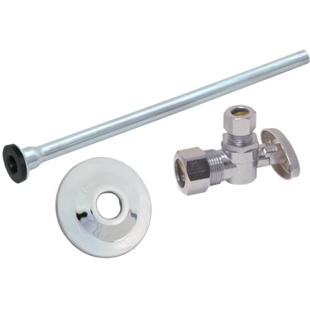 The Eastman® toilet supply kit includes the necessary items to connect your toilet to the water supply. This kit includes a semi-rigid copper riser, one stop valve and one escutcheon. All items are finished in chrome for a clean, modern look.