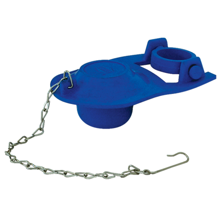 The EZ-FLO® universal toilet tank flapper is a replacement accessory that fits most brands of brass or plastic toilet flush valves. It is a 2-inch blue toilet flapper built with highly-durable rubber that resists corrosion from hard water. A stainless steel chain with hook is included for quick and easy installation
