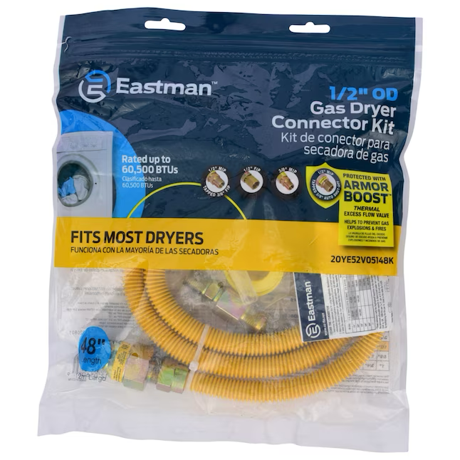 Fits most dryers with gas ratings up to 60,500 BTUs