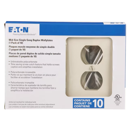 Eaton 1-Gang Midsize Light Almond Polycarbonate Indoor Duplex Wall Plate (10-Pack)