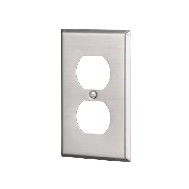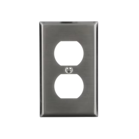 Eaton 1-Gang Standard Size Stainless Steel Stainless Steel Indoor Duplex Wall Plate