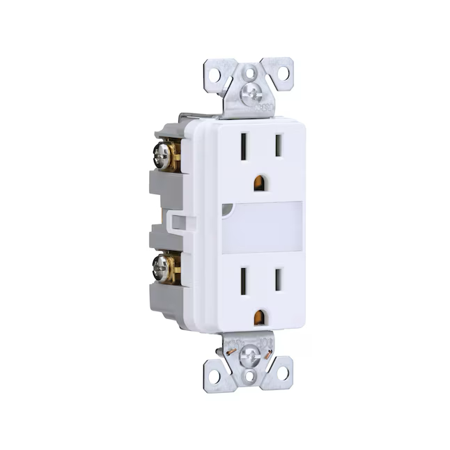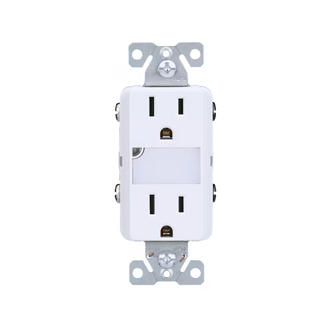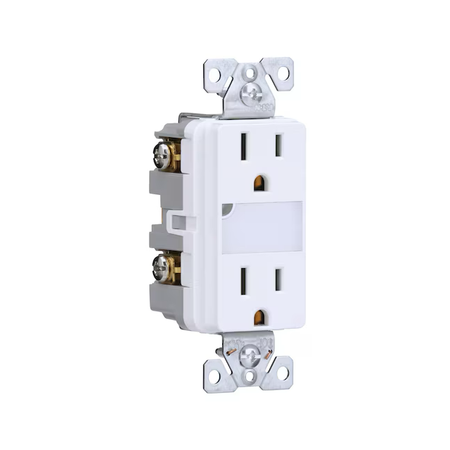 Eaton 15-Amp 125-Volt Tamper Resistant Residential Decorator Outlet with Night Light, White