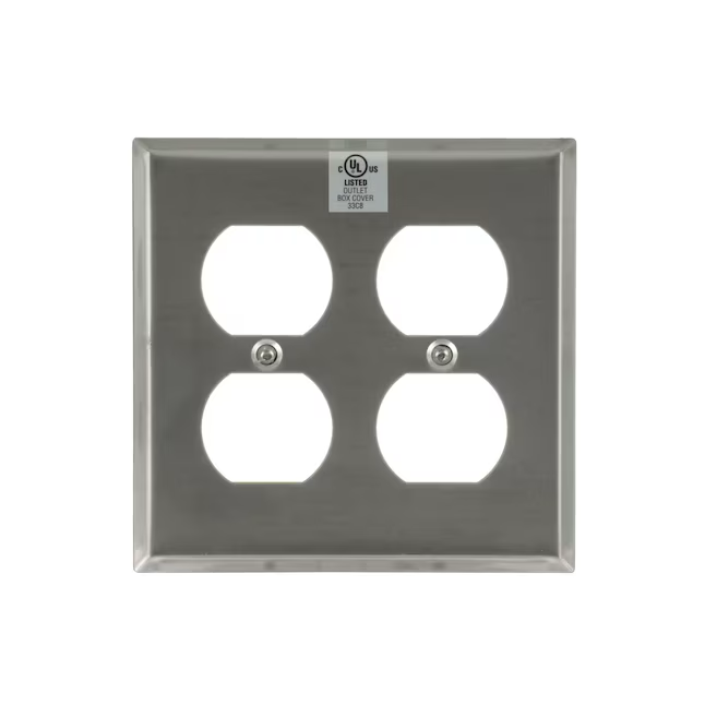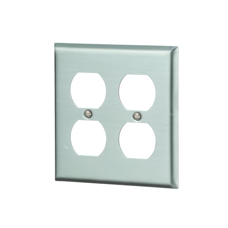 Eaton 2-Gang Standard Size Stainless Steel Stainless Steel Indoor Duplex Wall Plate