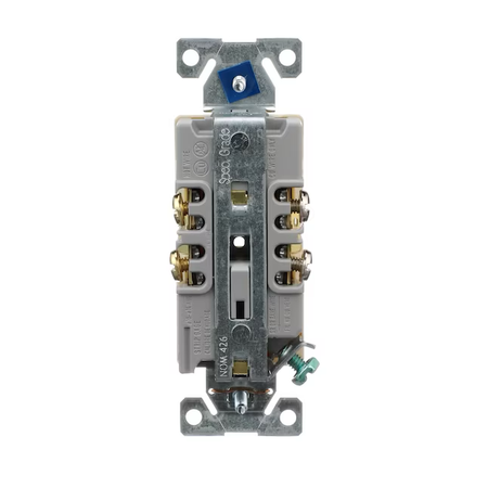 Screw-catch feature on duplex receptacle speeds mounting of wall plates