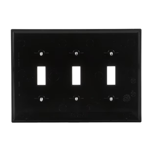 Eaton 3-Gang Midsize Black Polycarbonate Indoor Toggle Wall Plate