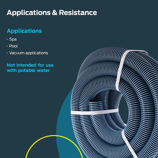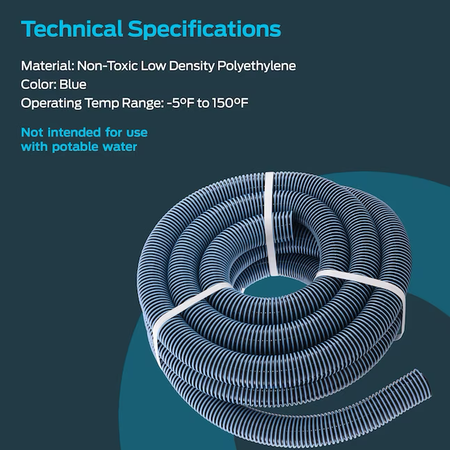 The EZ-FLO® Flexible Pool and Spa Vacuum Hose has a corrugated polyethylene construction. It is light-weight, built to float on the water's surface. The flexible construction allows for easy manipulation of the hose at all times, making it easy to clean all pool areas with efficient suction power. This durable pool and spa hose is ideal for indoor and outdoor use, UV-resistant, abrasion, and crush resistant for increased durability and a long life-span. The pool and spa vacuum hose can be cut to size.