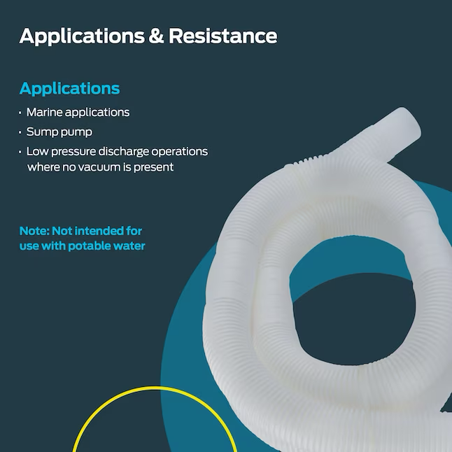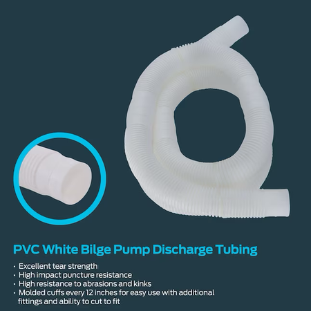 The EZ-FLO® bilge pump discharge hose has a corrugated PVC construction, making it flexible and light-weight. It is especially designed for marine and low-pressure water discharge applications for electric and hand bilge pumps. It is reliable with a high-resistance to abrasion and kinks.