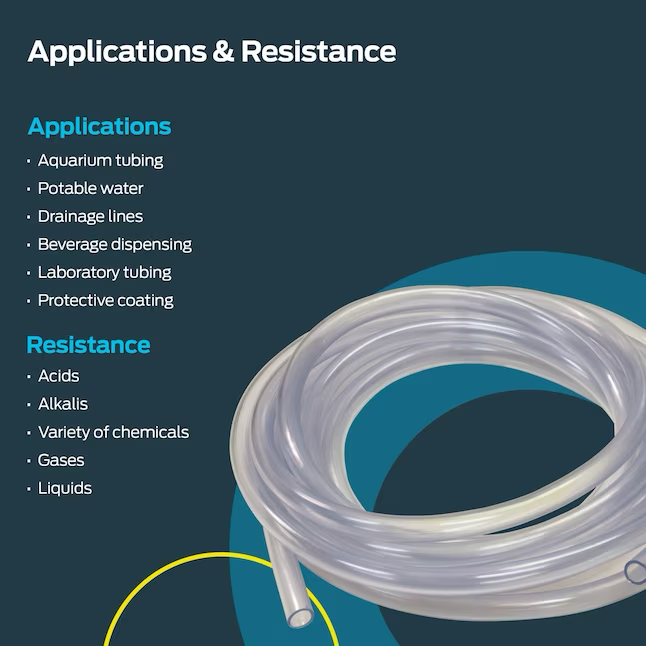 For use in drainage lines, potable water, beverage dispensing, laboratory tubing, and aquarium tubing