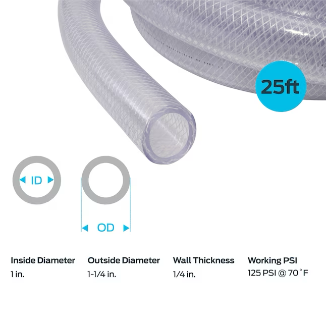 EZ-FLO 1-in Inner Diameter PVC Reinforced Braided Vinyl Tubing (By-the-Foot)