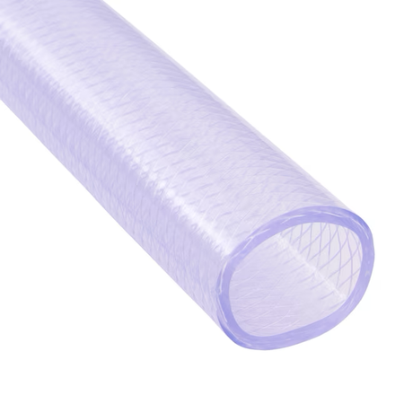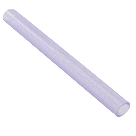 The EZ-FLO Braided Vinyl Tubing can be used in a wide variety of settings involving hydraulic, pneumatic, and vacuum lines. The clear, non-toxic material is reinforced for strength. Some commonly approved applications include: food and beverage lines, vacuum, coolant, hydraulic, and pneumatic lines. Resistant to acids, alkalis, a variety of chemicals, gases, and liquids. The tubing can be cut to size as needed. FDA compliant. Can be used in potable water applications.