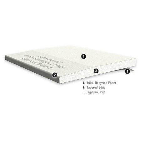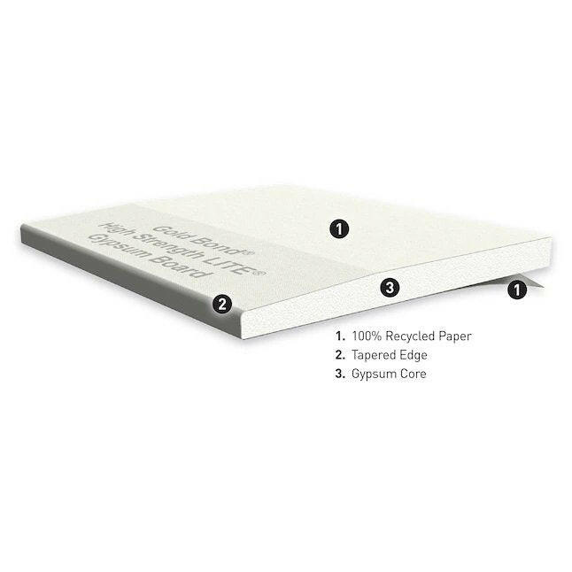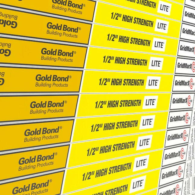 Gold Bond High Strength LITE Drywall is a specialty gypsum board that is formulated to be 25% lighter than original 1/2-in High Strength Drywall. The result is a superior board that is lighter in weight, sag resistant, and easier to handle. High Strength LITE Drywall Board can be used for walls and ceilings in non-fire rated single layer construction where framing members are spaced up to 24-in o.c. Because it can be installed on both walls and ceilings, it eliminates the need for two different types of gypsum board on the job.